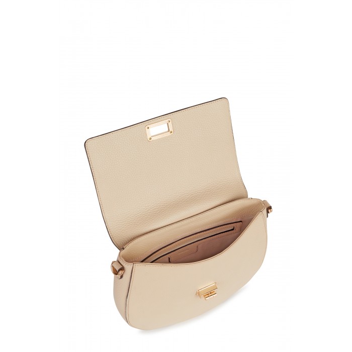 Женская коктейльная сумочка округлой формы идеально подойдет как для делового, так и для вечернего образа. Flavia – это коктейльная сумочка с округлым силуэтом и винтажным шармом. Она оснащена двойным плечевым ремнем и идеально подходит для различных случаев и потребностей: ее можно носить на одном плече, в руке или как повседневную современную сумку через плечо. Изготовлена из мягкой кожи кремового цвета